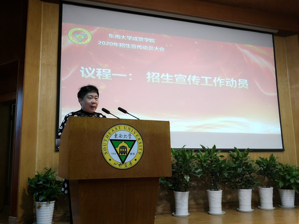 常务副院长许映秋首先代表学校对全体招生老师表示感谢,并充分肯定了我校历年的招生工作成绩。许院长结合疫情防控形势,向全体工作人员提出了三点要求,一是立足新形势,树立新观念;二是确定新方法,克服新挑战;三是发扬新思维,落实新行动。她希望大家以优良的个人形象、细致的服务态度、熟练的业务水平讲好成贤故事,展现成贤风采。