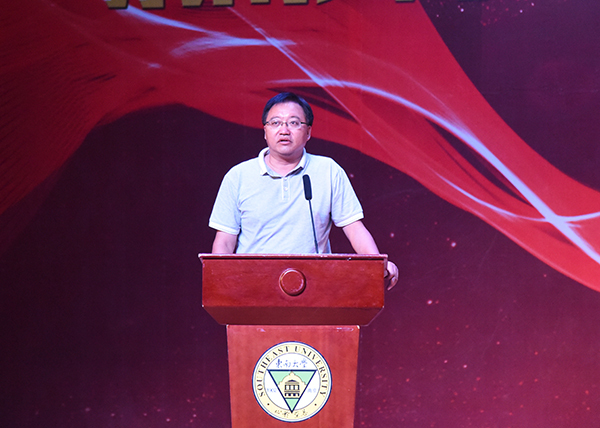 教职工代表基础部王青禾老师在成贤工作了十七个年头,他首先代表受表彰教师向各位领导和同事表示最诚挚的感谢和衷心的祝福,并表达了作为教师对69vj 的归属感与认同感。讲话中,他认为,作为教师要忠于职责、志存高远、铸就师魂、强身健心。