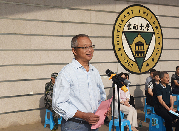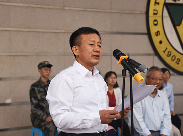 教师代表基础部数学教研室主任郁大刚老师代表全体教师发言。郁大刚老师从事教育工作已有三十八年,有着丰富的教学经验与人生阅历,他从过来人的角度对新生提出了期望:摆正学习态度,协调好学业与校园活动之间的关系;解放思想,创新思路,不断掌握新的学习方法;虚心向师长请教学习,提升个人能力。