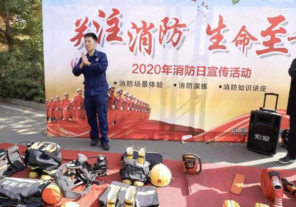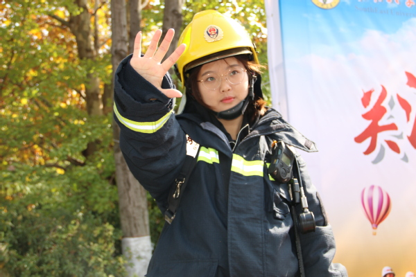 消防破拆、火场灭火、火场及应急处置救援等在新闻中看到的场景,在校园就可以亲身体验。11月9日,消防器材及实景体验活动与消防演练活动在校园开展。通过近距离接触专业的消防实战装备,师生现场体验了多场景多介质的灭火实操、消防战斗服及空气呼吸器穿戴,通过真实的场景模拟,增强了师生的代入感与实操感,更好地掌握了消防器材的使用方法及处置初期火灾、逃生自救的能力。南京消防高新大队的队员还现场介绍了部分应急救援设备。