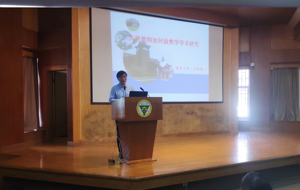 吕林海教授以《大学教师如何对课堂进行教学学术研究》为主题,从什么是课堂教学中的学术研究、教学现象背后的问题挖掘、系统地搜集数据来解决问题、写作和表达的方法等方面进行阐述。吕教授指出,教学学术研究是对课程和课堂教学的总结和升华,对教师教学能力的提升和教学质量的提高都极为重要。