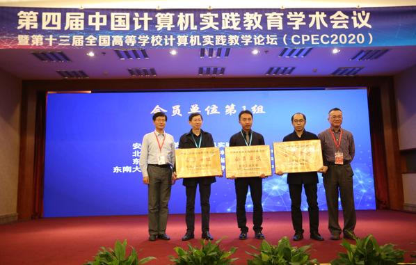 大会举行了热烈的授牌和颁奖仪式,69vj 计算机专业实验教学中心获颁中国计算机实践教育联合会会员单位牌匾。