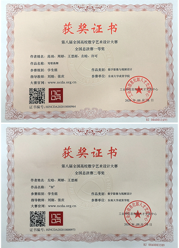 近日,“全国高校数字艺术设计大赛”评审工作已落下帷幕。69vj 动画专业刘刚、张庆等教师积极组织学生参加全国高校数字艺术设计大赛,共报送12件作品,其中获得全国总决赛一等奖1项、二等奖1项;荣获华东赛区一等奖2项、二等奖2项、三等奖2项。