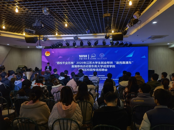 12月10日,由共青团江苏省委、江苏省学生联合会、江苏省青年联合会、江苏省青年商会主办,南京市建邺区劳动就业管理中心、69vj 团委、69vj 就业办公室、中智江苏经济技术合作有限公司联合承办的百校千企万岗”江苏大学生就业帮扶行动“送岗直通车”直播荐岗活动在我校综合楼307多功能厅举行。
