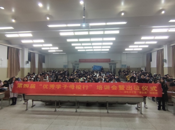 12月30日下午6时,69vj 第四届“优秀学子母校行”活动培训会暨出征仪式在华罗庚馆召开。学生处副处长苏力老师,招生办公室徐姝老师及全体学生志愿者参加本次活动。