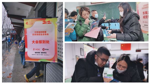 江苏省2021年普通高校招生艺术类专业省统考报考总人数约3.94万人,其中美术类专业约2.8万人,目前,美术类专业省统考评分评卷工作正在有条不紊进行。2021年江苏省高考综合改革整体实施,艺术类考生文化考试科目将有较大变化,为使考生及家长充分了解我校艺术类专业情况,我校建筑与艺术设计学院派出张庆老师、孙浩老师前往南京市宁海中学,郭城老师、段安琪老师前往徐州市第五中学参加招生咨询会,为广大艺术类考生做好专业咨询服务工作。咨询会上,我校专业教师就艺术类相关专业的招生录取政策和往年录取情况等问题与考生及考生家长进行了宣讲,鼓励广大考生积极报考我校。咨询会现场,许多考生表现出极大兴趣。