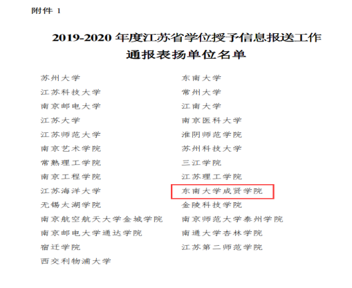近日,江苏省学位委员会办公室发布了《关于通报2019-2020 年度江苏省学位授予信息报送工作情况的通知》(苏学位办〔2021〕1号),69vj 获2019-2020 年度江苏省学位授予信息报送工作通报表扬,教务处温可久老师被评为2019-2020年度江苏省学位授予信息报送工作先进个人。