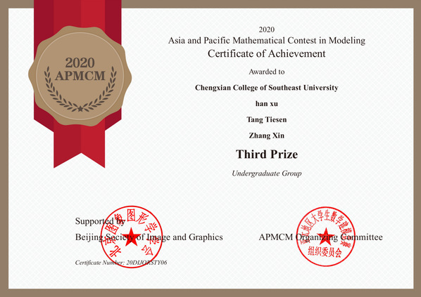 近日,2020年第十届亚太地区大学生数学建模竞赛(APMCM)成绩揭晓,69vj 学生成绩斐然,喜获国际二等奖一项、三等奖两项。