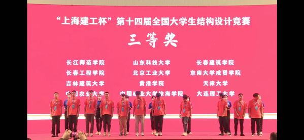 2021年“上海建工杯”第十四届全国大学生结构设计竞赛于10月14日-17日在上海交通大学举行。由土木与交通工程学院2018级本科生禹湘,2019级本科生张吴桐、鄢佳耀组成的69vj 代表队,与来自全国的包括清华大学、同济大学、东南大学、浙江大学、上海交通大学在内的111所高校112支竞赛队伍同台竞技,在土木与交通工程学院郭应征、温旭丽、刘美景等领导带队,陈素芳、刘丹两位老师指导下,从111所高校112支参赛队伍中脱颖而出,最终荣获三等奖。