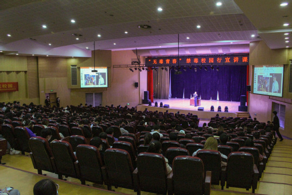 为积极响应国家禁毒号召,宣传禁毒知识,增强学生识毒防毒拒毒能力,校团委志工部联合南京市禁毒办于11月29日晚在我校综合楼报告厅开展了禁毒校园行“无毒青春”主题宣讲。南京市公安局禁毒支队四级高级警长陈林、南京市江北新区禁毒大队队长丁乃同担任主讲嘉宾,江苏省广播电视总台节目主持人黄彦琳和曹兆岭、李文、郭松涛三位禁毒志愿者演唱了禁毒之歌。现场两百多名同学聆听了宣讲,反响热烈。