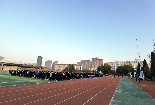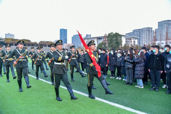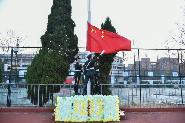 全城肃穆,山河同悲。上午7时,党委学工部部长施杰,团委书记、学工部副部长潘明烽,校团委老师、分团委书记、2021级辅导员、校院学生组织学生代表、2021级2672名新生共计3000多人参加公祭仪式。伴随着慷慨激昂的国歌,举行了升国旗仪式,国旗班将国旗升起后又徐徐降下,为南京大屠杀死难同胞下半旗志哀;随后,防控警报拉响,划破校园上空,全体师生手捧白菊,神情肃穆,向在南京大屠杀中不幸遇难的同胞们、为中国人民抗日战争胜利献出生命的革命英烈们深情默哀。默哀毕,学生代表吟诵了《南京!南京!》,一句句饱含深情的话语让在场师生深切感受到了南京那段最为沉痛的历史,悲愤的历史控诉和庄严的和平祈愿叩击内心。