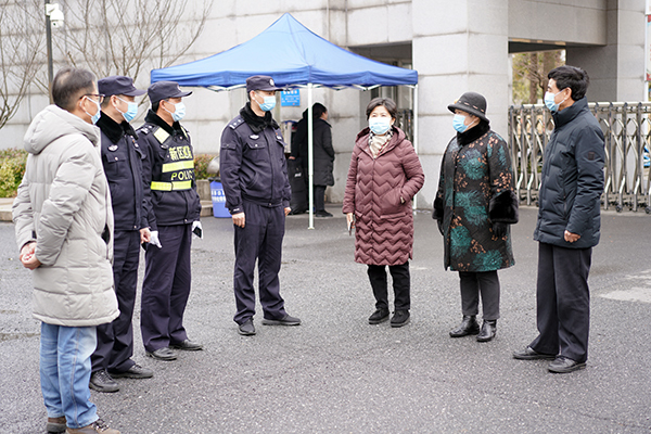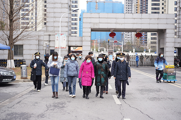 18日当天省、市、新区卫生监督所联合检查组到我校开展联合检查,并对疫情防控工作开展指导。学校常务副院长许映秋,副院长董梅芳以及相关部门负责人到学校正门、东门亲切慰问返校学生和工作人员,了解返校情况,并要求相关部门全力以赴做好迎接工作。南京市公安局江北新区分局内保支队、南京市公安局江北新区分局交通警察第一支队、泰山新村派出所派专人来到现场进行指导工作,保障学生顺利返校。