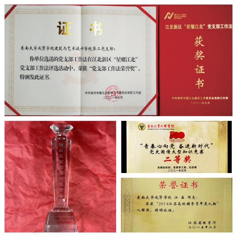 2019年本支部荣获69vj 先进基层党组织称号,2020年支部书记江晶荣获“全国民办高校优秀辅导”称号,2021年获评南京市江北新区“星耀江北”党支部工作法,荣获69vj 最佳党日活动评比“二等奖”两次,69vj 最佳党日活动“一等奖”三次、“二等奖”一次。支部党员荣获国际级奖项1人次,国家级奖项47 人次,省市区级奖项15人次,校级奖项96人次,奖学金26人次,学生党员的平均绩点为3.82,最高绩点为4.27。