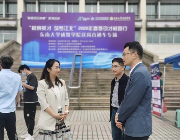 三、企业进校。5月19日、20日,学校党委副书记、副院长、纪委书记王荣,学生处处长施杰参加了江北新区、建邺区春季引才校园行走进69vj 专场招聘活动。王荣副书记与参会单位代表、学生亲切交谈,悉心了解企业需求和毕业生求职进展,并鼓励毕业生树立正确就业观,抓住机遇,尽早就业。此次参加招聘企业共68家,提供岗位数1100余个,共收取简历430份,186人初步达成就业意向。