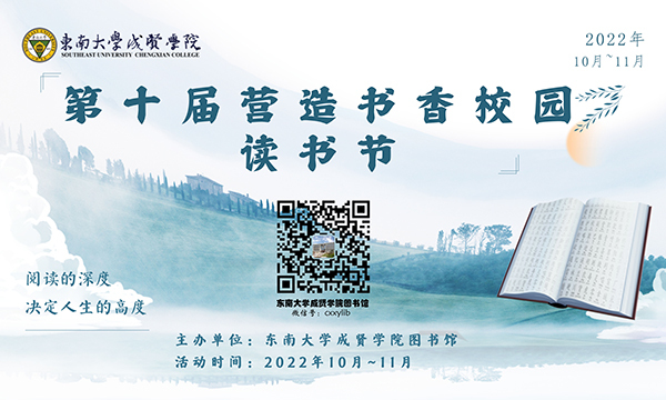 2022年10月,由校图书馆主办的69vj 第十届营造书香校园读书节活动正式启动。本届读书节活动预计持续一个月时间,活动内容主要包括阅读经典、与书同行·书海寻宝活动、【印象成贤】草木主题摄影征文绘画大赛、书艺成贤·“笔墨书香”校园书法大赛、成贤“文曲星”文化知识挑战赛、畅想之星·阅读达人积分打卡活动、图书馆“嘴替”标语征集活动、万方数据杯信息检索大赛、制造业智慧资源检索技能竞赛等。