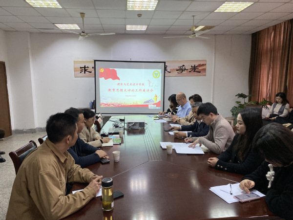 为全面贯彻落实学校教育思想大讨论的总体要求,建筑与艺术设计学院部署各专业教研室分别开展了教育思想大讨论,并于11月4日中午,在前期讨论的基础上,围绕“立德树人生为首位,教书育人课比天大,全面提升一流应用型人才培养水平”的主题,召开了全院教师教育思想大讨论工作座谈会。