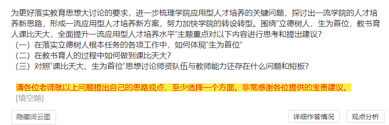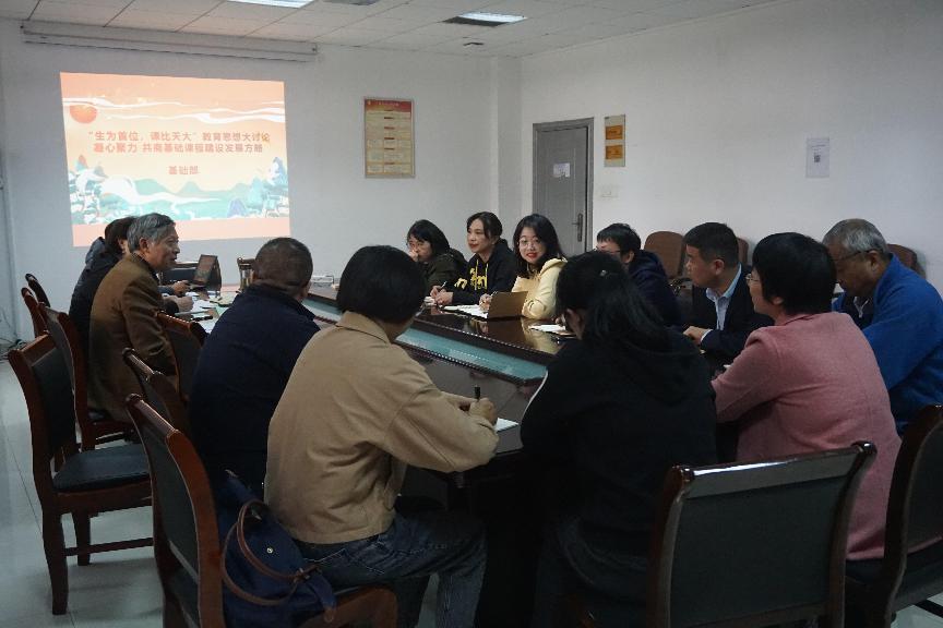 根据学院2022年第25号文件《关于开展“立德树人生为首位,教书育人课比天大,全面提升一流应用型人才培养水平”教育思想大讨论的通知》精神,基础部近期开展了教育思想大讨论的系列活动。为落实“生为首位,课比天大”的教育思想,基础部邀请全部基础课专兼职教师100多人参与教育教学研讨活动。此次系列活动有:向基础课教师(包括在69vj 任教的近100位兼职教师)发放调查问卷、组织部分教师进行专题研讨,并召开党支部书记和教研室主任会议,对反馈的意见进行认真分析和研判,提出解决方案和落实措施,确保69vj 基础课教学质量不断提高,为学院培养高质量人才打好基础。