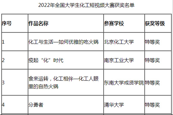 近日,由中国化工学会主办、南京工业大学承办的2022年“科思化学杯”全国大学生化工短视频大赛落下帷幕,69vj 制药与化学工程学院二十余人组队参加本次比赛。其中,原创视频《食来运转,化工相伴—化工人眼里的自热火锅》荣获特等奖,《你发现奶茶吸管变了吗》荣获三等奖。本次大赛历时7个月,来自清华大学、浙江大学、天津大学等71所高校的154部作品参赛,其中19所高校的20部作品进入总决赛。经过激烈角逐,大赛产生特等奖4组、一等奖6组、二等奖10组。总决赛分答辩和视频展示两个环节,各参赛队伍从化工与生活、环境、国家战略等角度出发设计作品,创意巧妙、讲解透彻,充分展现化工学子扎实的理论功底和勇于创新的精神风貌。