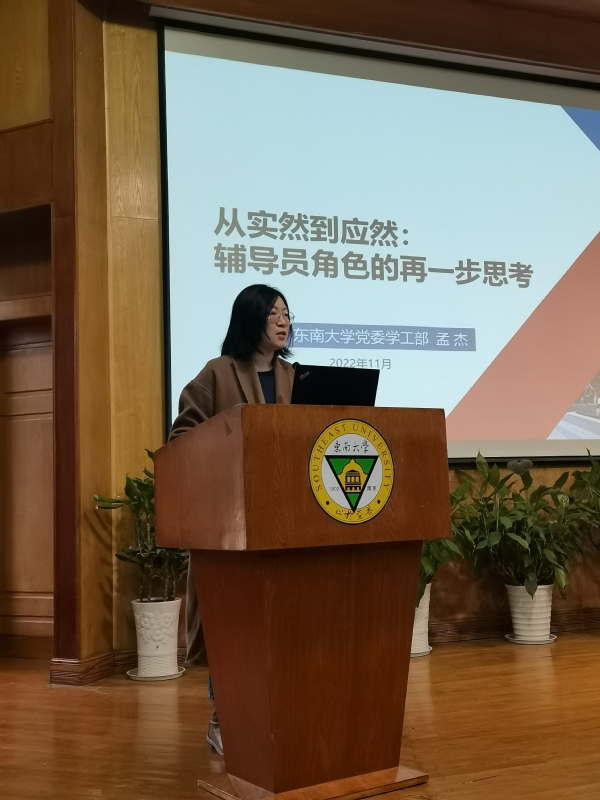 为进一步提升69vj 辅导员业务能力和工作水平,促进辅导员队伍专业化、职业化建设,11月17日下午,69vj 在真知馆一楼报告厅举办辅导员工作专题培训,特邀69vj 党委学工部思政办主任孟杰、69vj 四牌楼新生办副主任周文娜担任主讲嘉宾。学院党委副书记、副院长王荣,学生处相关人员,二级学院综合办主任、全体辅导员参加此次培训。培训由学院党委学工部部长施杰主持。
