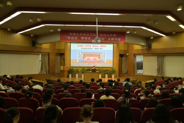 为深入学习贯彻习近平新时代中国特色社会主义思想,全面贯彻落实党的二十大精神和习近平总书记关于“大思政课”和青年工作系列重要论述精神,讲好时代大思政、激发青年大能量。校团委于5月28日晚在真知馆报告厅开展了“学思想、跟党走、建新功”信仰公开课主题讲座,南京市委党校郝继明教授受邀宣讲,近300名五四表彰获奖代表聆听了讲座。