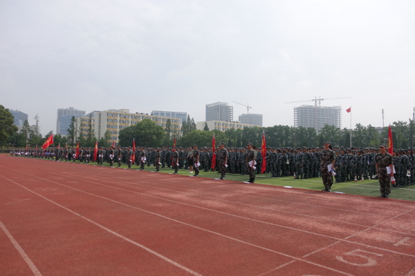 动员大会上,潘老师向2022级学生介绍了军事理论课程和军事技能训练安排,希望同学们深刻领会军训的重要意义,严明纪律,听从指挥,行动统一,闻令而动,拿出敢于战胜一切困难和挑战的气魄,以饱满的热情和高昂的斗志,出色完成训练任务,展示大学生朝气蓬勃和奋发向上的精神风貌,充分展现新时代青年的风采。希望带训教官要文明带训、科学施训,利用休息时间向同学们讲好军训故事,激发同学们的爱国热情,提高参训的积极性,展现青年学生担当。随后,军训团举行了授旗仪式,各中队对各连排进行了任务分配和场地对接,并将各连排带到指定场地进行训练。