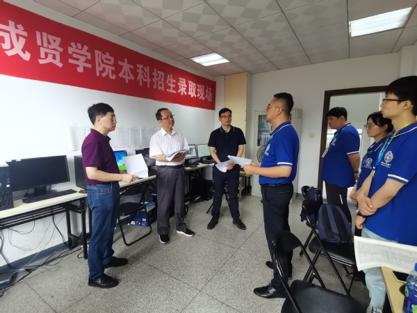 在招生录取现场,学校领导认真听取了招生工作办公室负责人关于录取工作安排、生源情况等方面的汇报,询问了我校招生录取工作进程等情况。