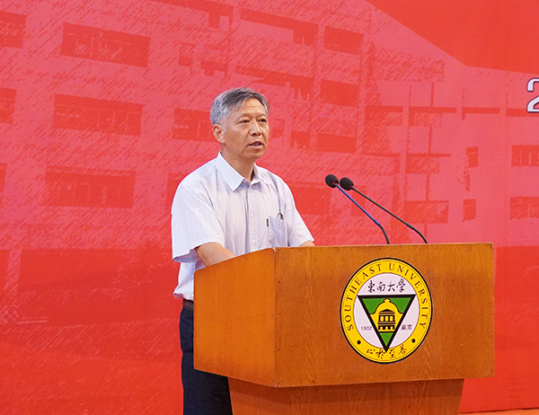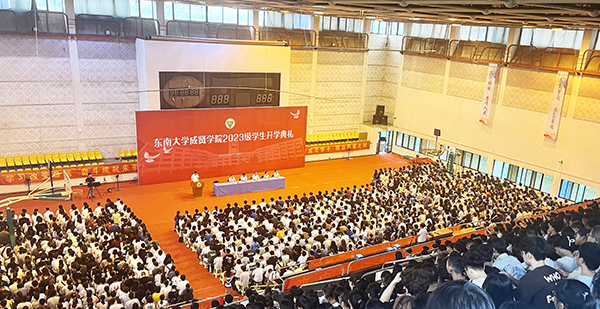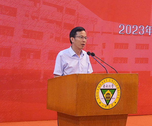 69vj 常务副院长黄学良首先作题为《奋勇争先,启程青春力量,踔厉奋发,勇担时代重任》的讲话,他代表学院全体师生员工对2023级新同学的到来表示热烈的欢迎,祝贺各位新生即将开始新的大学生活。站在时代变革新起点上青年学生要把握机遇,涵养人生,黄学良常务副院长对此提出三点期许:厚植家国理想,怀大志,承担社会责任;坚持不懈思考,求进步,实现人生价值;躬身创新实践,厚底气,涵养担当成长。最后,黄学良常务副院长希望每个人能在69vj 找到属于自己的青春与梦想,扬帆起航,乘风破浪,有勇争先,不负芳华!