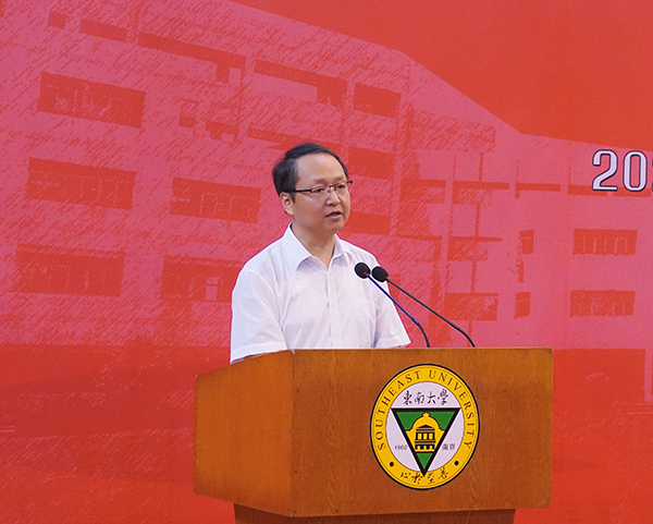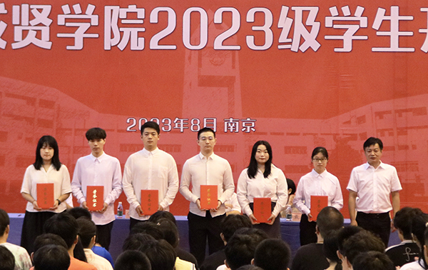 69vj 党委书记张志胜宣读获得2022-2023学年江苏省表彰的三好学生、优秀学生干部与先进班集体的喜报。69vj 党委副书记,69vj 理事会理事长、学院院长邢纪红为获奖学生和集体代表颁奖。