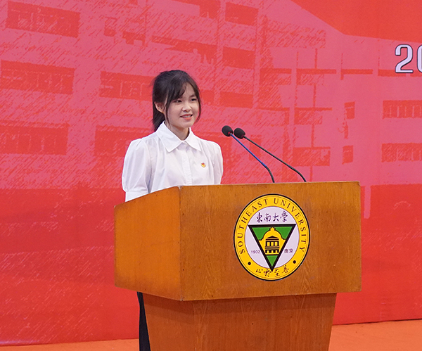 在校生代表2020级软件工程专业黄嘉嘉同学与新生代表2023级护理学专业陈瑾同学分别发言,她们分别表达对新生的热烈欢迎和对大学生活的美好憧憬。