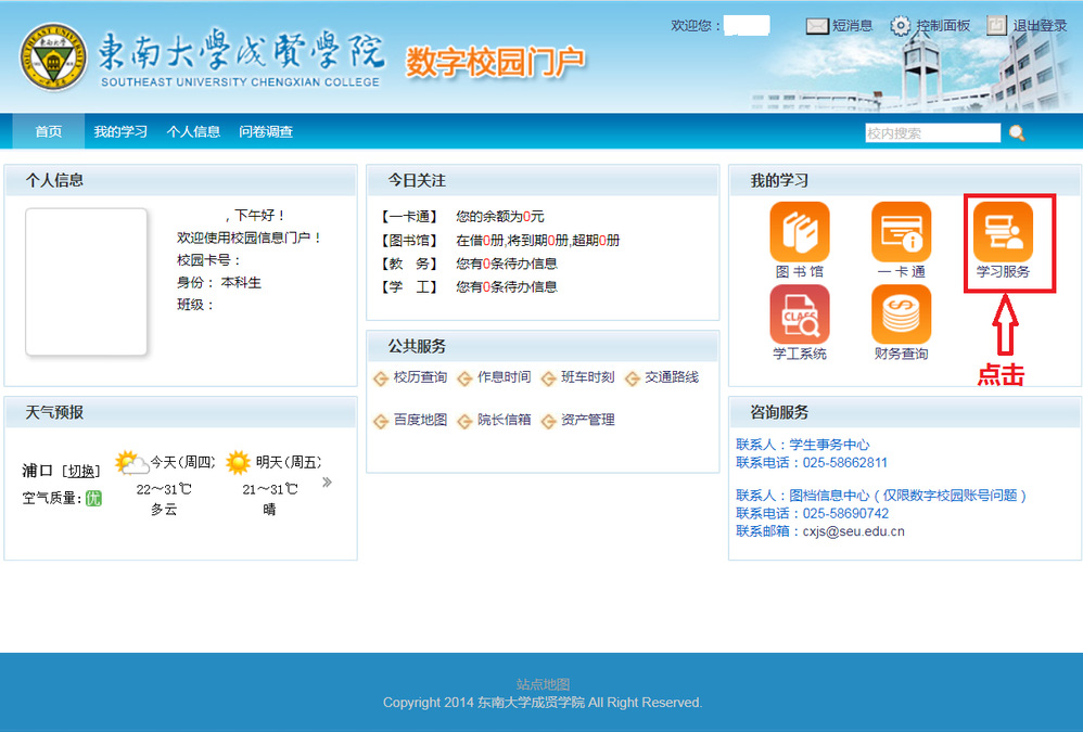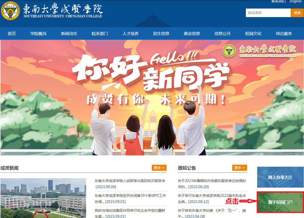 一、登录学校官网,网址://69vj.net/,点击“数字校园门户”