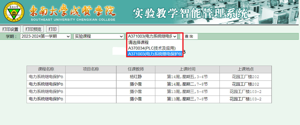 2.如图5所示,某些专业的学生个人课中有部分“实践类课程”名称显示为蓝色字体的,此类课程的课表在我校“实验教学智能管理系统”中显示,学生可逐个点击此类课程名,系统将自动链接至“实验教学智能管理系统”,并展出该课程的详细安排,如图6所示