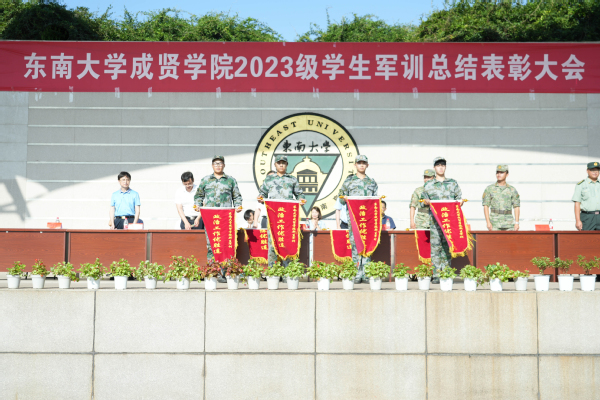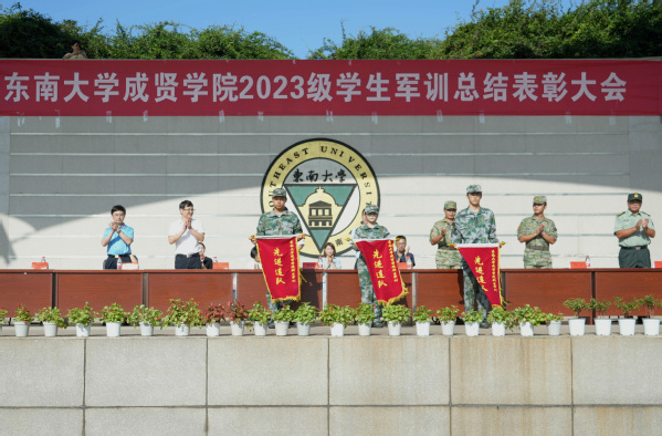 展示结束后,学校常务副院长黄学良宣读了2023级学生军训团嘉奖令,出席大会的学院领导、承训单位领导为获奖集体、个人和连队代表颁奖。优秀学员二营五连三排王征同学代表2023级全体军训学生发言,他向各承训教官表达了感谢,描绘了军训期间的所见所闻所想和对大学生活的期许。前路漫漫亦灿灿,相信经过努力奋斗,同学们都能成人成贤,谱写人生灿烂华章。