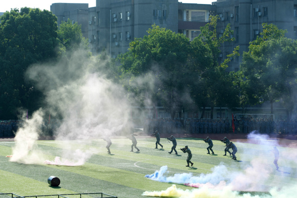 迎着朝阳,奏唱国歌,大会在庄严的升旗仪式中开始。随后,2023级新生军训男女生军体拳和战术方队对训练科目进行了展示,他们身着迷彩服,精神抖擞、饱含激情、口号嘹亮,充分展现了此次军训的成果。精彩的汇报展示赢得了与会人员的阵阵掌声。