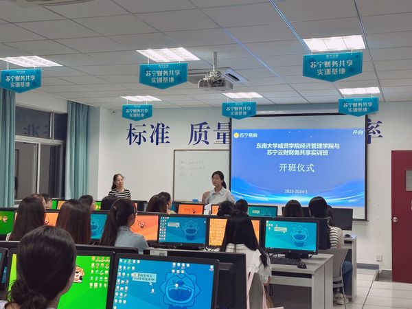 9月19日,经济管理学院与苏宁云财财务共享实训班在我校苏宁云财实训基地举行了2023-2024-1学期的开班仪式。经过前期的简历筛选和面试,来自经管学院的34名同学入选本学期的实训项目,即将开展为期三个月的实训。开班仪式由财务共享实训班班主任潘天娇老师主持,苏宁云财的企业导师、经济管理学院副院长高凯丽、财务管理教研室主任陆旸老师出席。开班仪式上,高凯丽副院长首先介绍了实训项目的基本情况,对同学提出鼓励和希望,并强调了实训纪律要求。企业导师对学生进行企业文化的宣讲,开展了工作内容、工作流程、工作要求的具体培训。