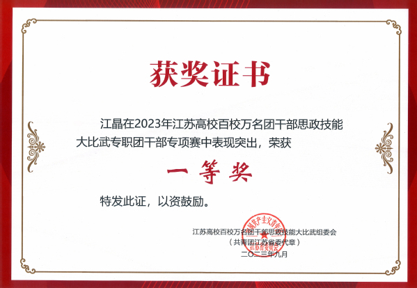 为深入贯彻落实习近平总书记在学习贯彻习近平新时代中国特色社会主义思想主题教育工作会议上的重要讲话精神,紧紧围绕学习宣传贯彻党的二十大精神主题主线,落实习近平总书记关于共青团在高校学生思想政治工作中要发挥主力军作用的重要要求,进一步聚焦思想引领主责主业,团结引领团员青年坚定信念跟党走,勇做走在新时代新征程的奋进者。9月25日,由共青团江苏省委、江苏省委教育工委、新华日报社、江苏省学生联合会联合主办的“学思想、跟党走、建新功”江苏高校百校万名团干部思政技能大比武在宿迁学院顺利举行。我校建筑与艺术设计学院分团委书记江晶荣获“专职团干部专项赛”一等奖,制药与化学工程学院综合办主任刘静荣获“兼挂职团干部和青年教师专项赛”二等奖,土木与交通工程学院辅导员孙琳玲荣获“思政课教师专项赛”三等奖。