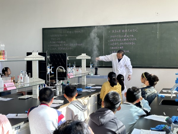 在制化学院实验室,老师从身边常见的现象为切入点,带领“小工程师”们探索化学的奥秘。首先,老师演示了“黑面包”实验,大家通过观察、触摸,了解了浓硫酸脱水的原理;随后,老师带领孩子们进行了水果、饮料的酸碱度测定,大家认真比对PH试纸,记录实验数据,老师引导大家选择健康的饮料,爱护牙齿。