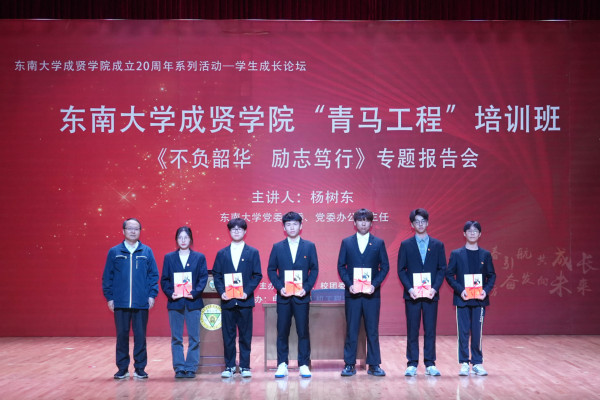 11月7日晚,由党委学工部、校团委主办,电子与计算机工程学院协办的69vj 成立20周年系列活动——学生成长论坛、“青马工程”培训班《不负韶华 励志笃行》专题报告会在大学生活动中心313报告厅举办。报告会特邀69vj 党委常委、党委办公室主任杨树东担任主讲,学院党委书记张志胜,党委副书记、副院长、纪委书记王荣,组织人事部部长汪旭东,党委学工部部长、学生处处长施杰,各学院综合办主任、分团委书记、辅导员和2023-2024学年“青马工程”培训班600余名学员共同聆听了报告。本次活动由校团委书记、人武部部长潘明烽主持。