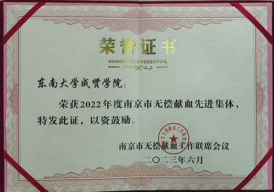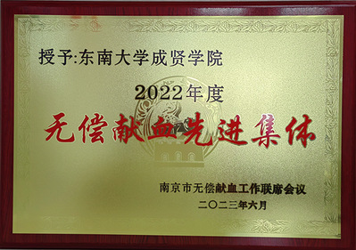 近日,南京市无偿献血工作联席会议对2022年度全市无偿献血先进集体和个人的予以表彰,我校荣获“2022年度南京市无偿献血先进集体”。