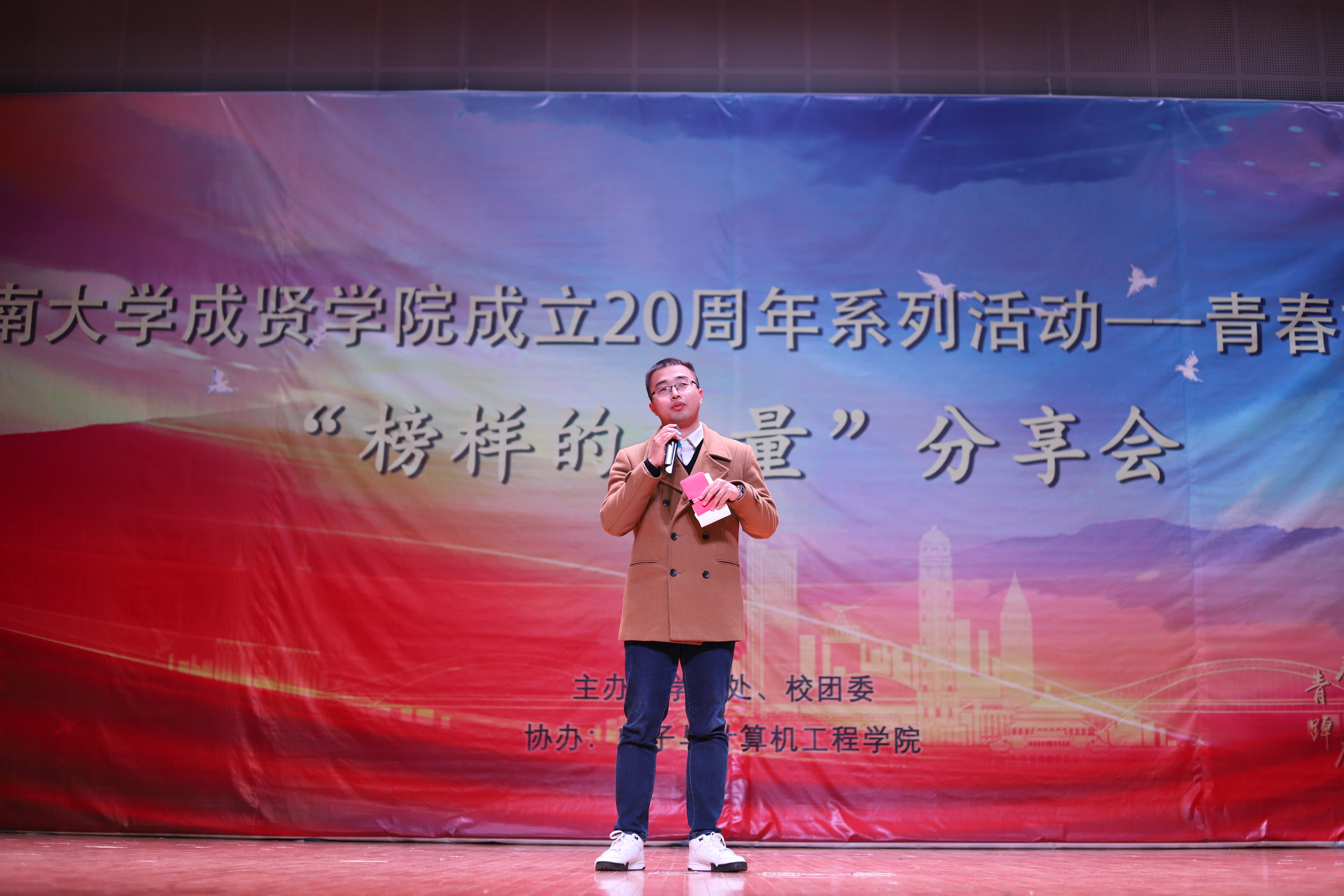 为更好促进学生成长成才,提升自我认知、自我学习能力,以青年榜样为指引审视自身,牢记青春担当,激扬青春梦想,11月15日晚,69vj 成立20周年系列活动——“榜样的力量”分享会在大学生活动中心313报告厅举行,2011届校友王文婷律师、2019届校友辅导员鲍泽昊、2023年度国家奖学金获得者黄嘉嘉、2023级退伍新生陈佳琪进行分享交流,全校600余名师生现场聆听。