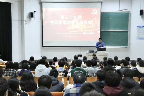 学院组织人事部部长汪旭东主持开班仪式并向全体学员介绍了本期党校培训的课程体系和授课专家,强调了党校从严治学、从严执教的纪律要求,他希望全体学员以此次培训学习为契机,锤炼党性修养,坚定理想信念,真正做到学有所获、研有所得、行有所效,争取早日加入中国共产党,成为党组织的新鲜血液和新生力量。