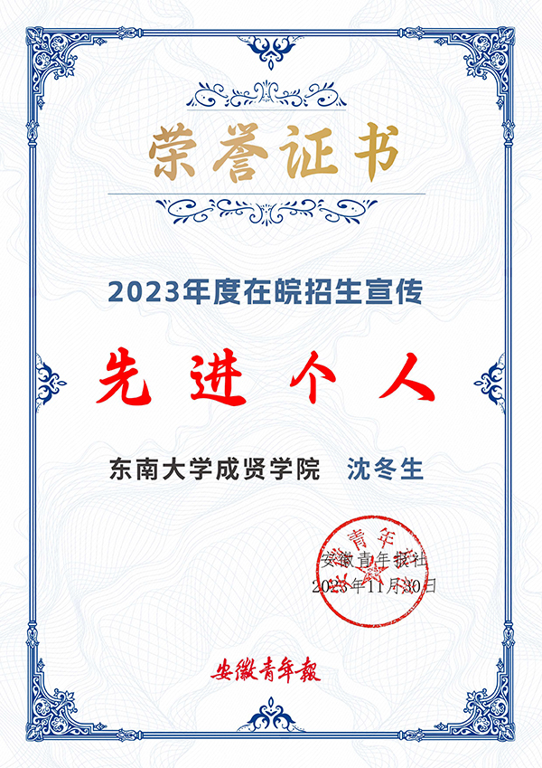 近日,安徽青年报组织召开了“2023年度在皖招生宣传工作总结表彰会”及“新高考改革背景下高校招生工作培训会”。我校凭借综合实力和影响力获评“2023年度在皖招生宣传最具影响力高校”。安徽招生宣传负责人、图档信息中心主任沈冬生获评“2023年度在皖招生宣传先进个人”。