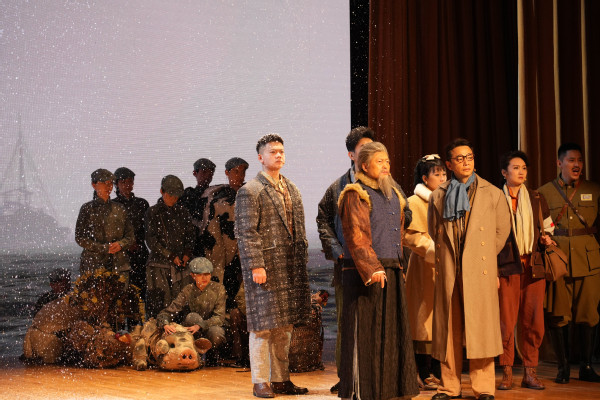 《西迁》是一部以抗日战争为大背景的话剧,聚焦知识分子的抉择和行动,为保存中华民族的抗日火种,中央大学师生带着实验室的全部动物奔赴重庆,开始了一场史无前例的另类“西迁”。此剧以人与动物生灵为对象,视角独特,构思新颖,塑造了一系列有血有肉的人物形象。时代的洪流滚滚向前,小人物们先后被命运推入这支特殊的队伍,面对敌人侵略,面对纷飞战火,面对饥寒困苦,他们选择挺身而出,舍生取义。最终,他们以少胜多,以弱胜强,抵达了朝天门码头。这是一首知识分子的抗战史诗,这是一场中华民族抗战史上悄无声息的壮举,表现了抗战时期中华民族决不屈服、向死而生的心灵史、正气歌。演出运用最新的舞台艺术表现手法,生动展示了这一特殊的长征,见物见人见精神,演出过程掌声不断,喝彩连连,反响热烈。演出结束后,同学们深受触动,共情共鸣,在浓厚的艺术氛围里重温峥嵘岁月,感受信仰力量。