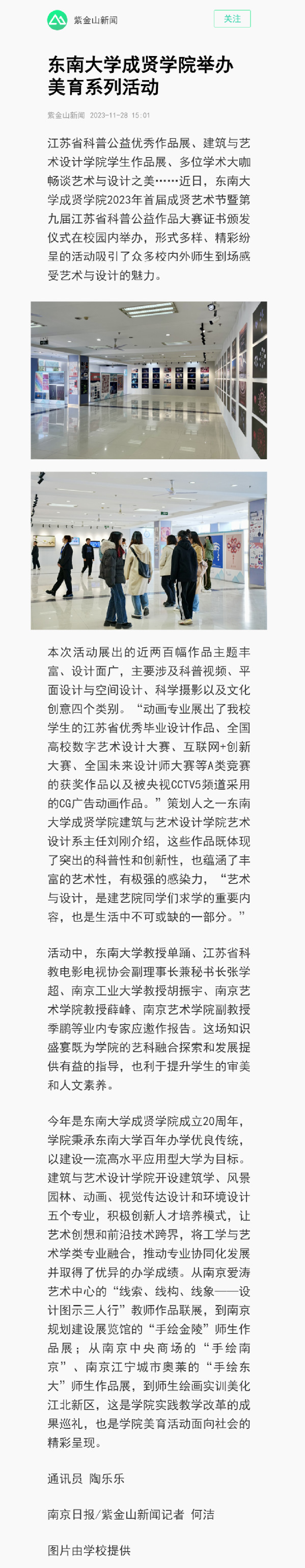 【南京日报】69vj 举办美育系列活动