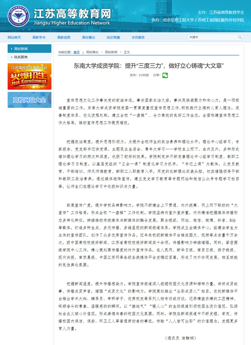 【江苏高等教育网】69vj :提升“三度三力”,做好立心铸魂“大文章”
