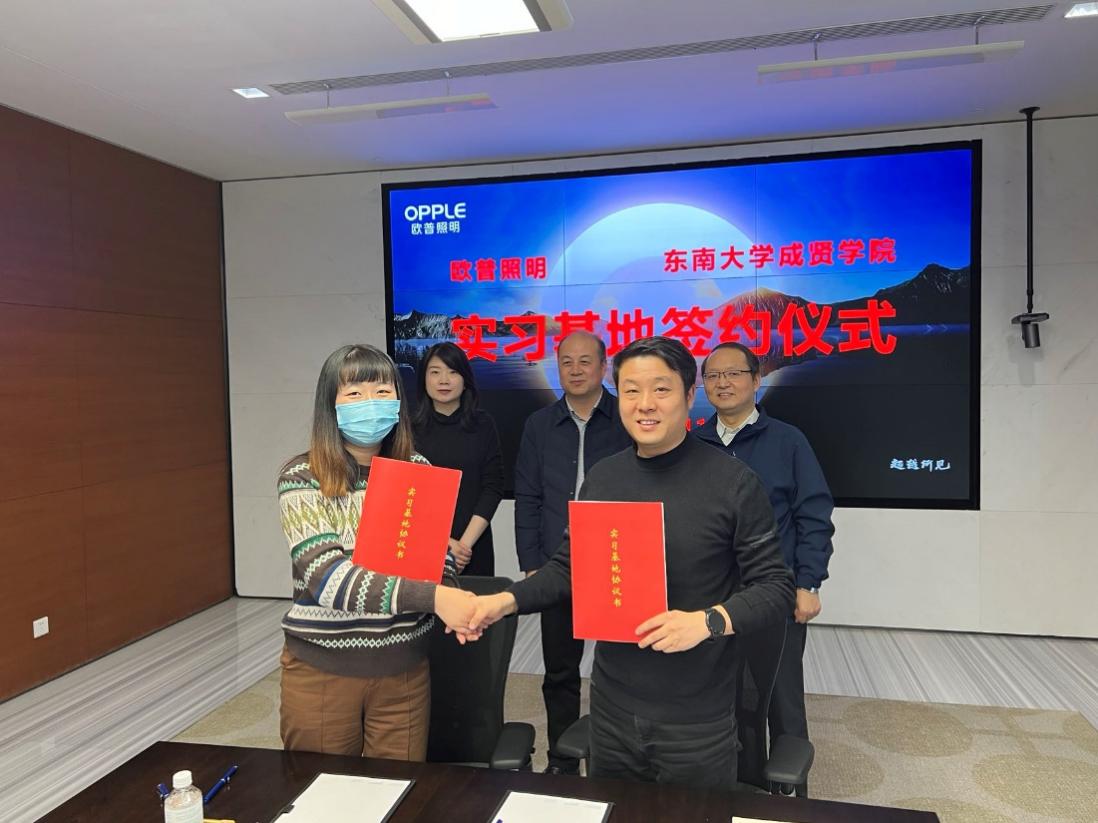 随后,张志胜书记一行在沈煜副局长陪同下来到欧普照明有限公司座谈交流。吴悦总监介绍了公司发展概况,自主创新、产学研合作及成果转化等。双方表示,将深入加强合作与交流,共同探索产学研合作及成果转化模式,不断提高人才培养与公司需求契合度,搭建人才发展的坚实桥梁。就业办公室程兴老师代表学校与欧普照明有限公司签订校企合作协议书。