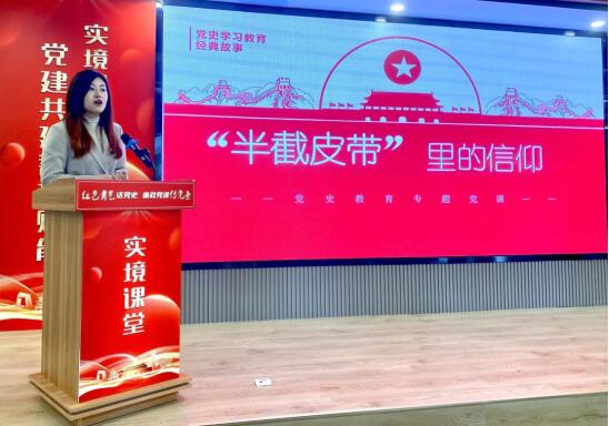 随后,69vj 党总支青年委员潘天娇以“半截皮带的信仰”为主题,生动讲述了长征途中红31军93师274团“半截皮带”的故事,红军战士们宁肯忍饥挨饿,也要将半截皮带留下来,带着它去延安见毛主席。现场观众反响热烈,深刻体会到革命理想高于天、铁心跟党走的坚定信仰。