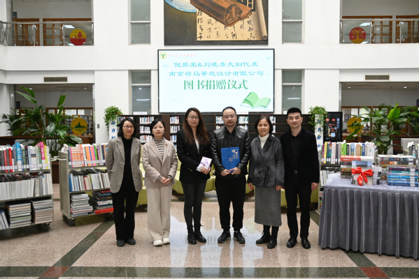 4月11日中午,倪樊荣、刘晓青夫妇代表南京荷马景观设计有限公司向69vj 捐赠书籍,捐赠仪式在图书馆隆重举行,学校副院长戴玉蓉,建筑与艺术设计学院党总支副书记邵叶鑫、副院长王娟芬、部分师生参加了本次捐赠仪式。捐赠仪式由图书馆馆长封晓倩主持。