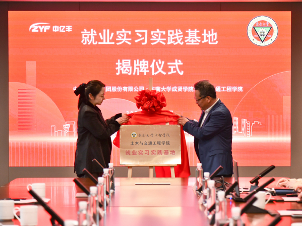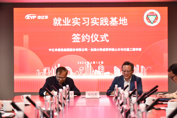 中亿丰建设集团股份有限公司总工程师韩树山首先对郭正兴院长、杨阳书记一行的到来表示热烈欢迎,同时他围绕企业发展历史、企业文化、企业经营范围以及集团在“智能建造”方面的发展情况向与会领导和老师做了介绍。韩树山总工程师表示,中亿丰集团希望加强与高校的产教联合体建设,深化校企产教融合,助力学生高质量就业,为地方经济发展服务。土木与交通工程学院院长郭正兴围绕学院创建江苏省一流专业,向与会领导介绍了学院在专业建设、师资队伍建设、人才培养以及校企合作等方面的情况。郭正兴院长希望加深与中亿丰集团的合作,特别是在“智能建造”领域,依托学院开办的“智能建造”新专业,立足苏州地方经济发展,在人才培养、科技研发、项目孵化、成果转化等方面做好校企供需对接,让更多成贤学子能够选择中亿丰、扎根中亿丰。随后,郭正兴院长与张浩副总裁共同签订了就业实习实践基地协议,杨阳书记与张浩副总裁共同为“69vj 土木与交通工程学院就业实习实践基地”揭牌。