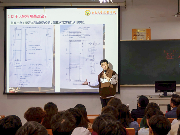 活动在刘美景主任的精彩介绍中拉开帷幕。在“‘砼’心筑梦,铸魂育人”篇章中,吴文清和董开发进行了分享。吴文清老师通过国内外各大工程案例形象展示了土木工程专业特色魅力、发展历程及智能化进程,并结合专业特点对学生进行学业指导和思想引导,勉励学生在做好学业规划和人生规划的同时,要树立远大理想、锤炼坚韧品质、练就过硬本领。董开发老师以自身为例,与学生分享了自己参与国内各大型建设项目的经历、教育教学与专业生产实际相结合的案例、个人职业发展规划与落实的情况,形象生动地向学生展示了土木工程专业的发展现状和智能建造技术的应用前景。他通过分享土木与交通工程学院优秀毕业生的学习方法与成效,对学生提出了要确立学习目标、注重学习方法、改进学习态度、重视兴趣发展、充分利用资源的美好期盼。