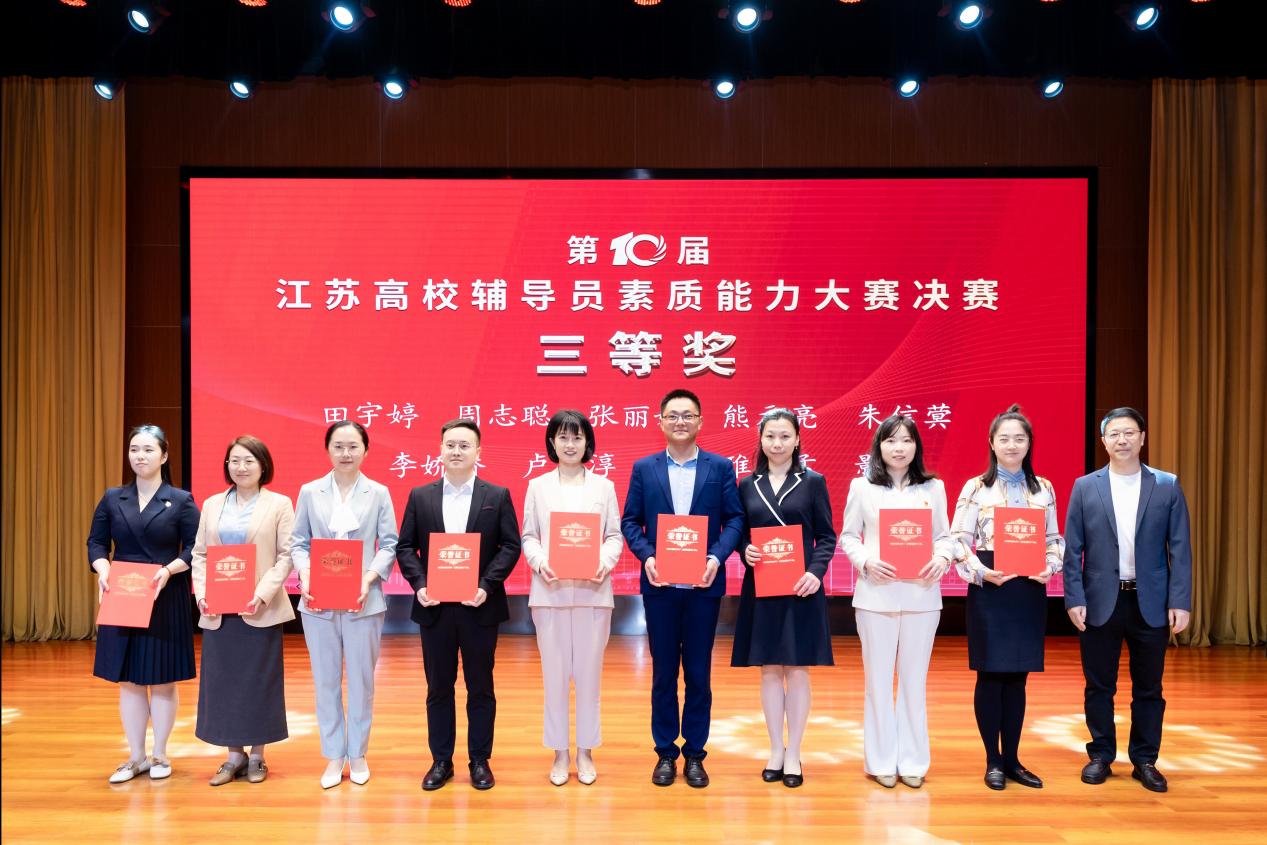 田宇婷老师(右三)荣获第十届江苏高校辅导员素质能力大赛决赛三等奖